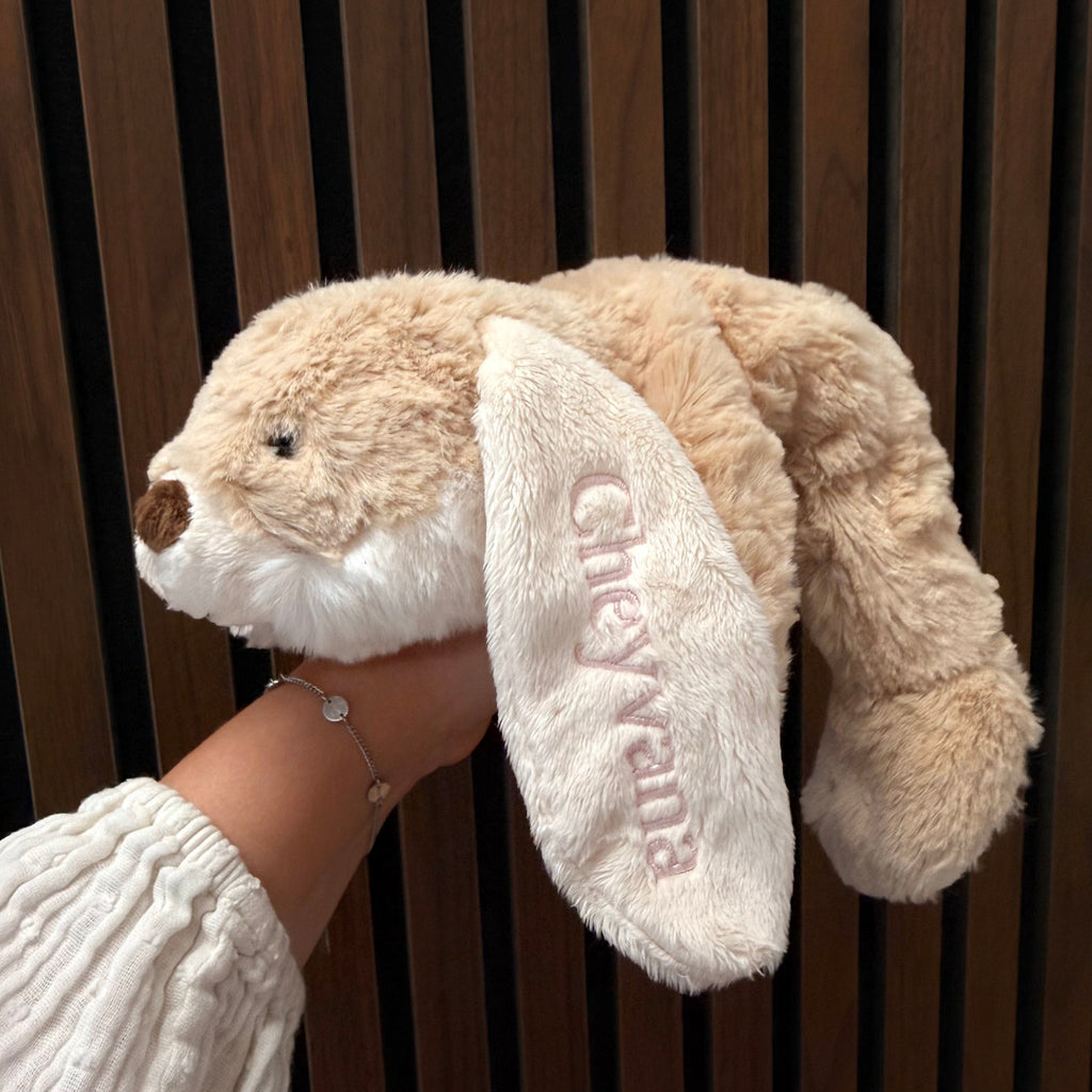 Onze knuffels met naam zijn niet zomaar speelgoed. Ze zijn ontworpen om een specialen band te creëren, om te kunnen troosten op de juiste momenten of een luisterend oor aan te bieden wanneer dit nodig is. Met de mogelijkheid om te knuffel te personaliseren met de naam van de baby, wordt het niet alleen een luisterend oor, maar ook een dierbare herinnering. Kies je voor een lieve knuffel konijn of ga je voor een schattige beren knuffel?
