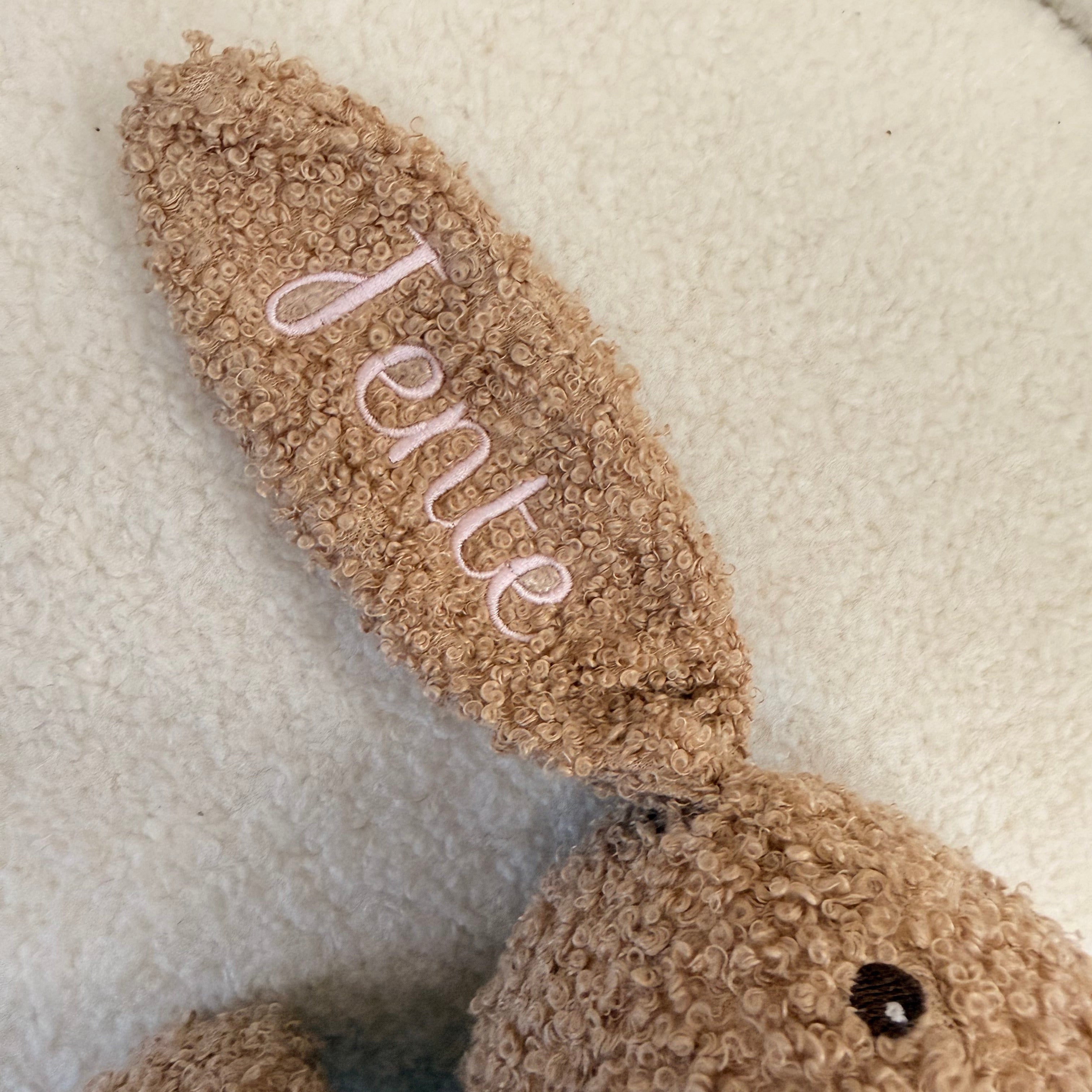 Deze gepersonaliseerde Bunny knuffel is het perfecte cadeau voor een geboorte of babyshower. Lief, stijlvol en uniek een knuffel die een blijvende herinnering wordt.