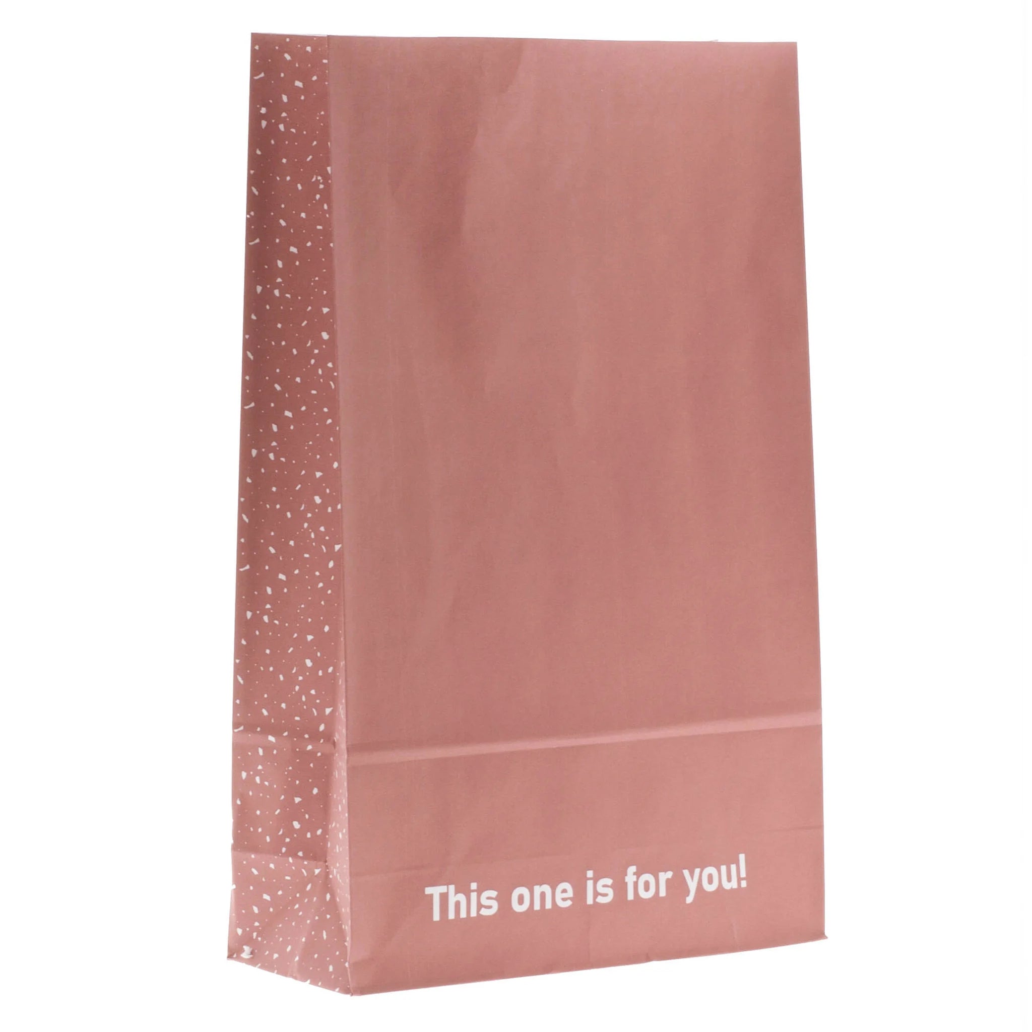 Deze cadeauzakjes hebben het formaat 'medium'. Ze hebben een formaat van 22cm breed en 35.5cm hoog. De bodem en zijvouw van de blokbodem zakjes is 9cm. De blokbodem zakjes zijn gemaakt van 100 grams wit kraftpapier