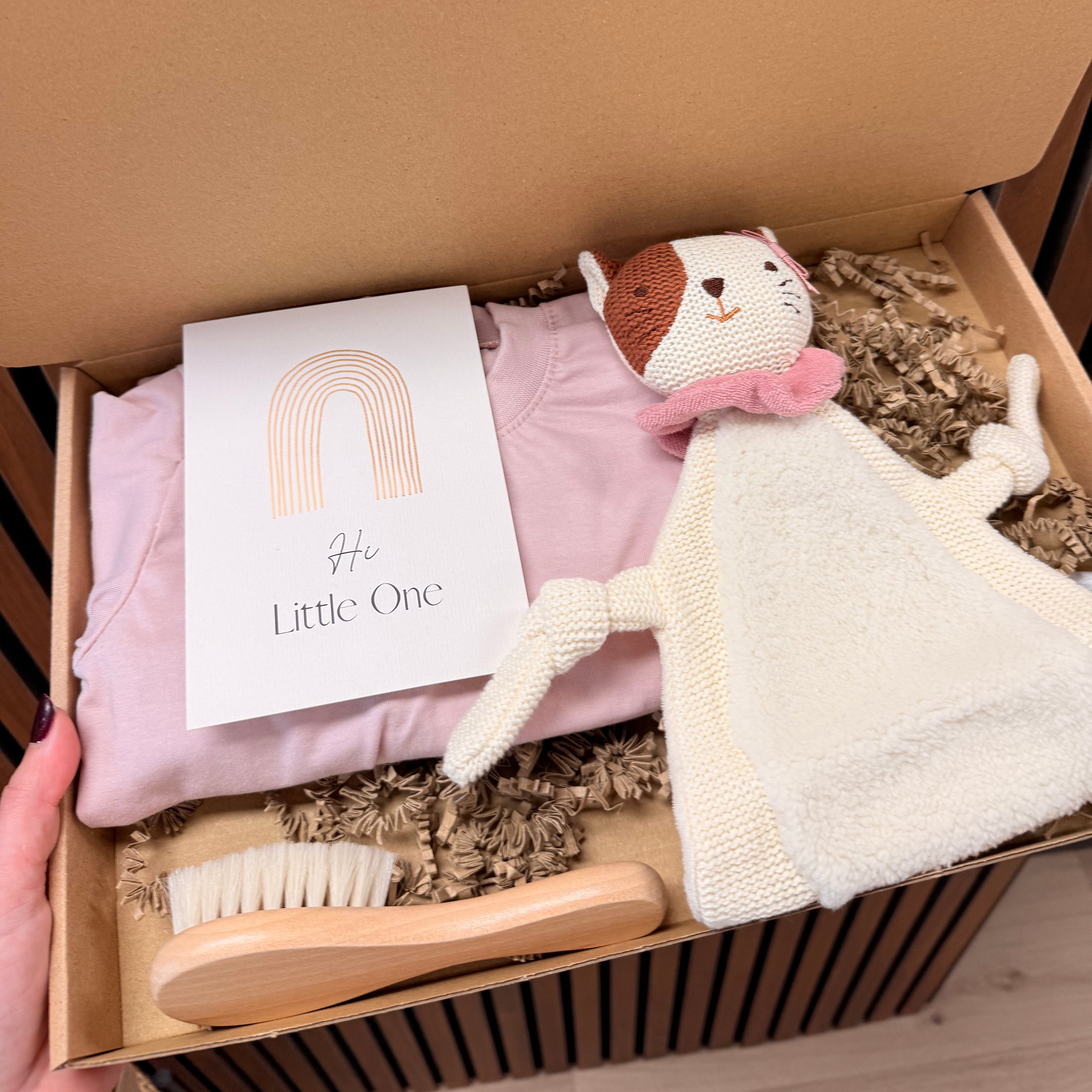 Op zoek naar een liefdevol kraamcadeau met naam? Deze roze kraamcadeaubox is met zorg samengesteld in het Bkado-atelier en bevat drie zachte, stijlvolle producten die samen één warm geheel vormen. Perfect om te geven bij een geboorte of babyshower een cadeau dat met aandacht is gemaakt en met trots wordt gegeven.