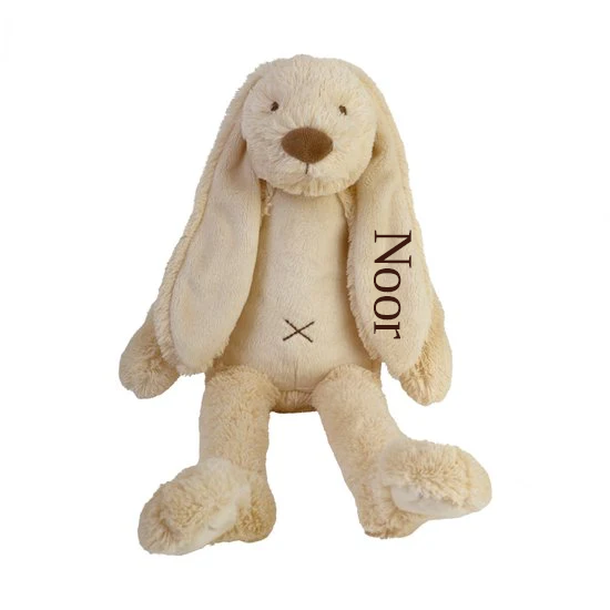 Het populairste konijn van Nederland, maar dan met een persoonlijk tintje. Deze Happy Horse Richie met naam is superzacht, heerlijk knuffelbaar en een favoriet cadeau voor baby’s en jonge kinderen. In het Bkado-atelier borduren wij de naam in het oor zorgvuldig, duurzaam en met oog voor detail.