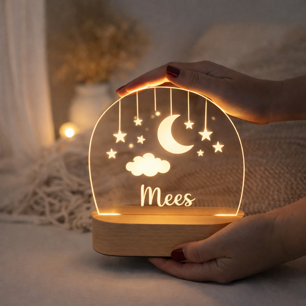 Deze nachtlamp is meer dan alleen verlichting. Het is een persoonlijk item dat helpt bij het creëren van een vertrouwde en veilige sfeer in de kinderkamer. Een blijvende herinnering die jarenlang meegaat en elke avond opnieuw een warm gevoel geeft.