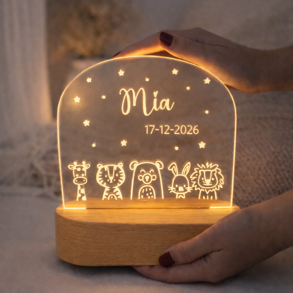 Safari nachtlamp met naam – warm licht voor de baby- en kinderkamer