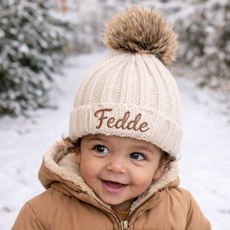 Wat deze muts extra bijzonder maakt, is de mogelijkheid om hem te laten borduren met naam. Een subtiel detail dat van een praktische wintermuts een persoonlijk item maakt, en een prachtig cadeau voor de wintermaanden.